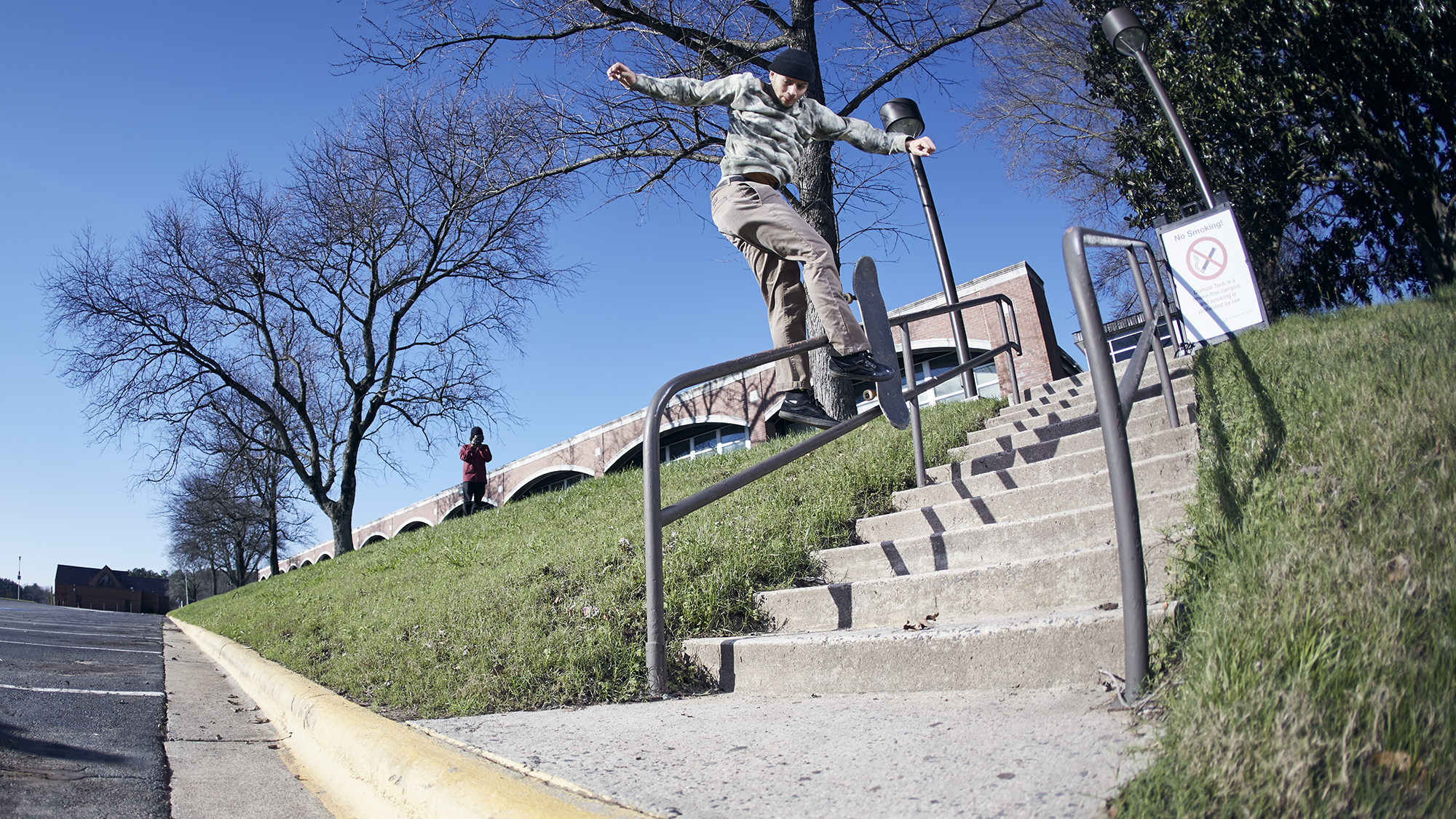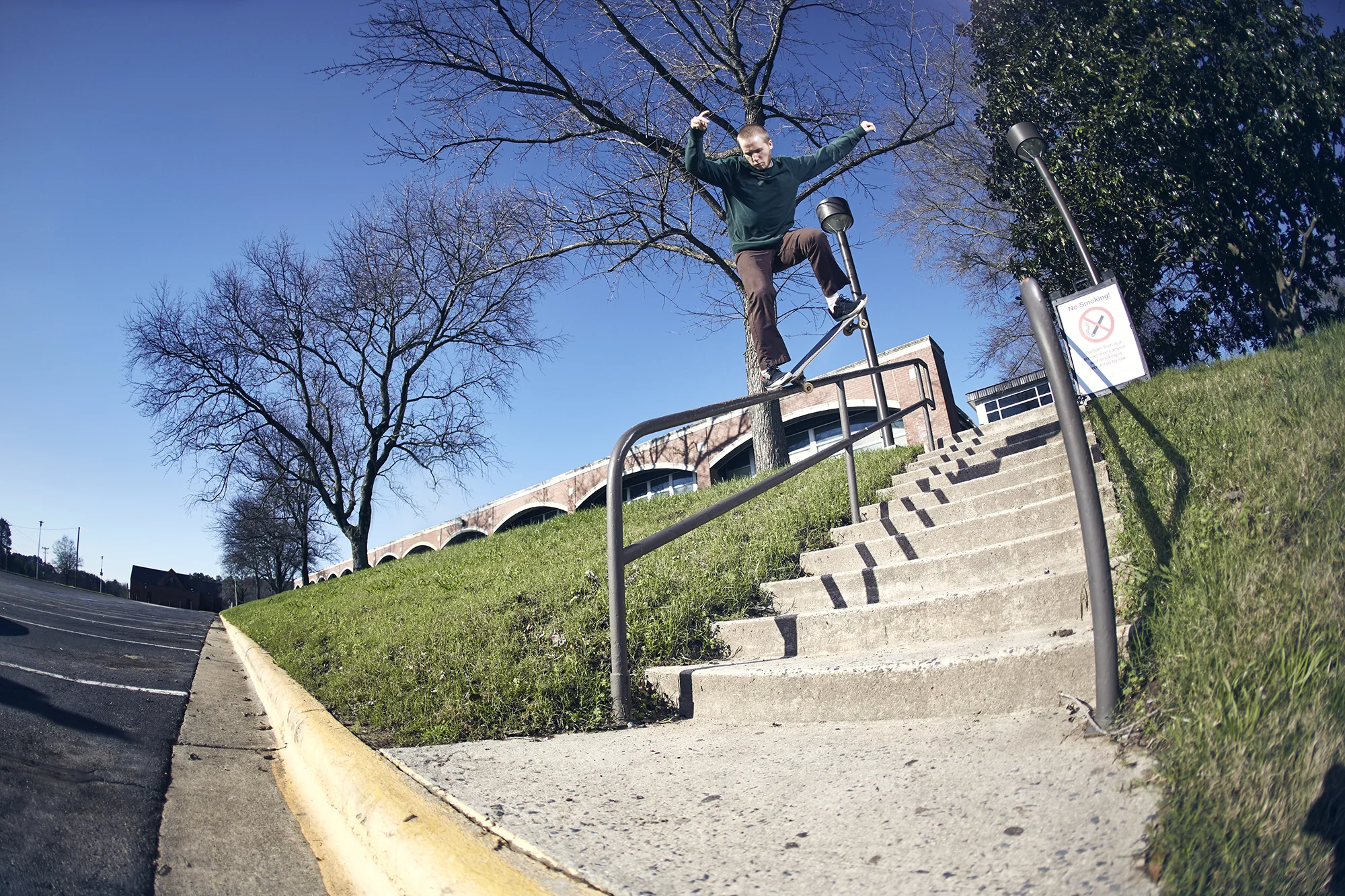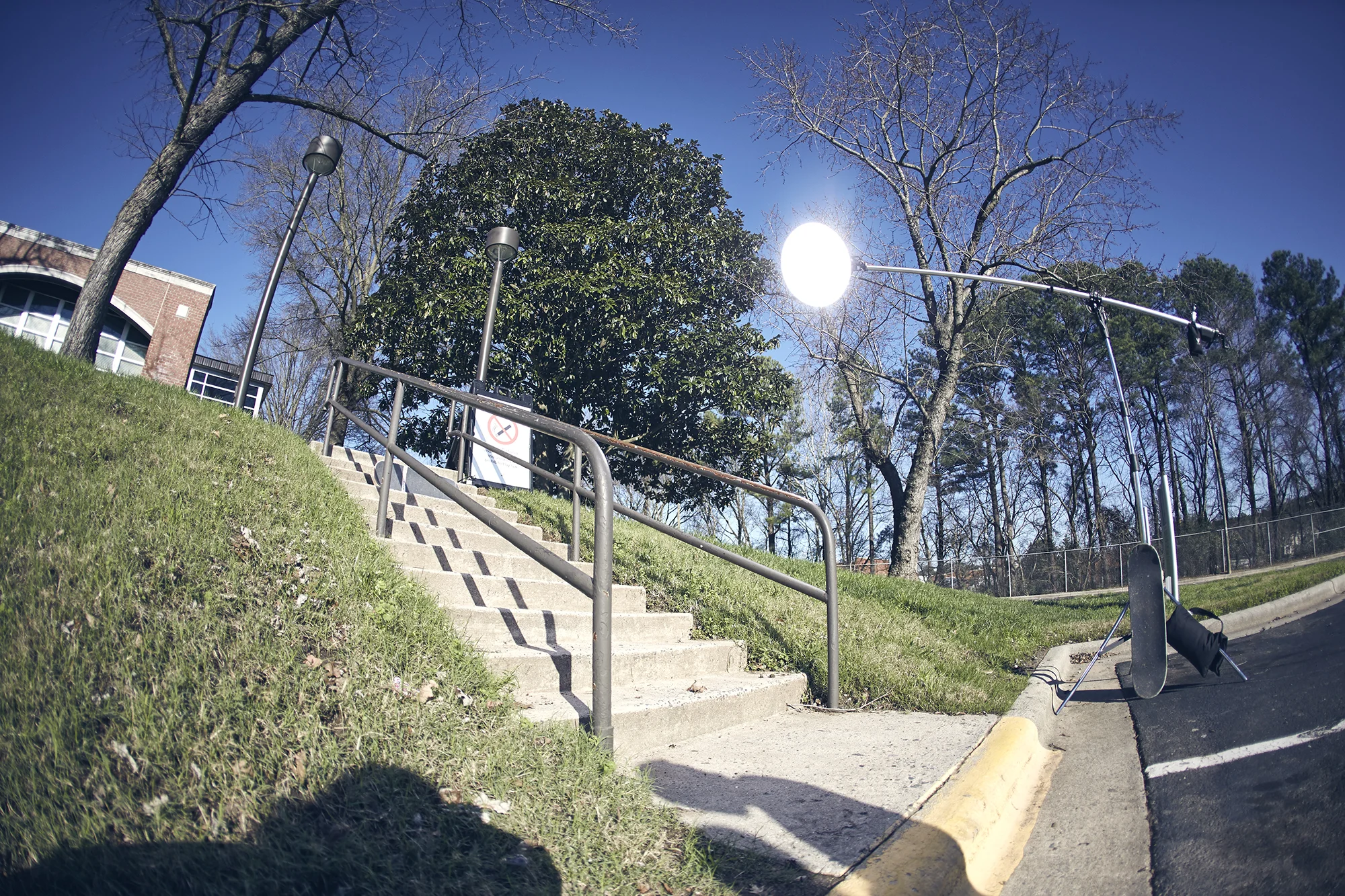 On January 2nd I had the opportunity to go out and shoot with skateboarders John Evans, Pete Simpson, Chris Roque, Clint Beswick, and Justin Ackers. We met up in Durham, NC to warm up at the skatepark and discuss what spots to go to during the day. That saturday was the first clear sunny day in the past few weeks so we knew we would be getting some good shots. We went to NC central campus to look at a handrail but were immediately asked to leave, which is a normal thing to happen at schools. From there we went to a ledge spot where Justin Ackers did a boardslide pop boardslide and a gap to boardslide. After that we came to a large handrail for Chris Roque to backside 5050 with little effort. After celebrating a successful spot we headed to another handrail that had a small curb at the bottom of it. Clint Beswick quickly landed a backside crooked grind. Chris Roque attempted a backside lipslide but after a few tries fell back and hit his head on the ground, he stayed cautious to get up and walked away fine. Pete Simpson followed up Chris with a frontside feeble. After everyone getting some good shots on that rail we headed to NC state campus to session some benches and a stairset in the brickyard. It was a very productive day and I had a great time getting out with some new people to shoot, looking forward to getting back out there with these talented guys.